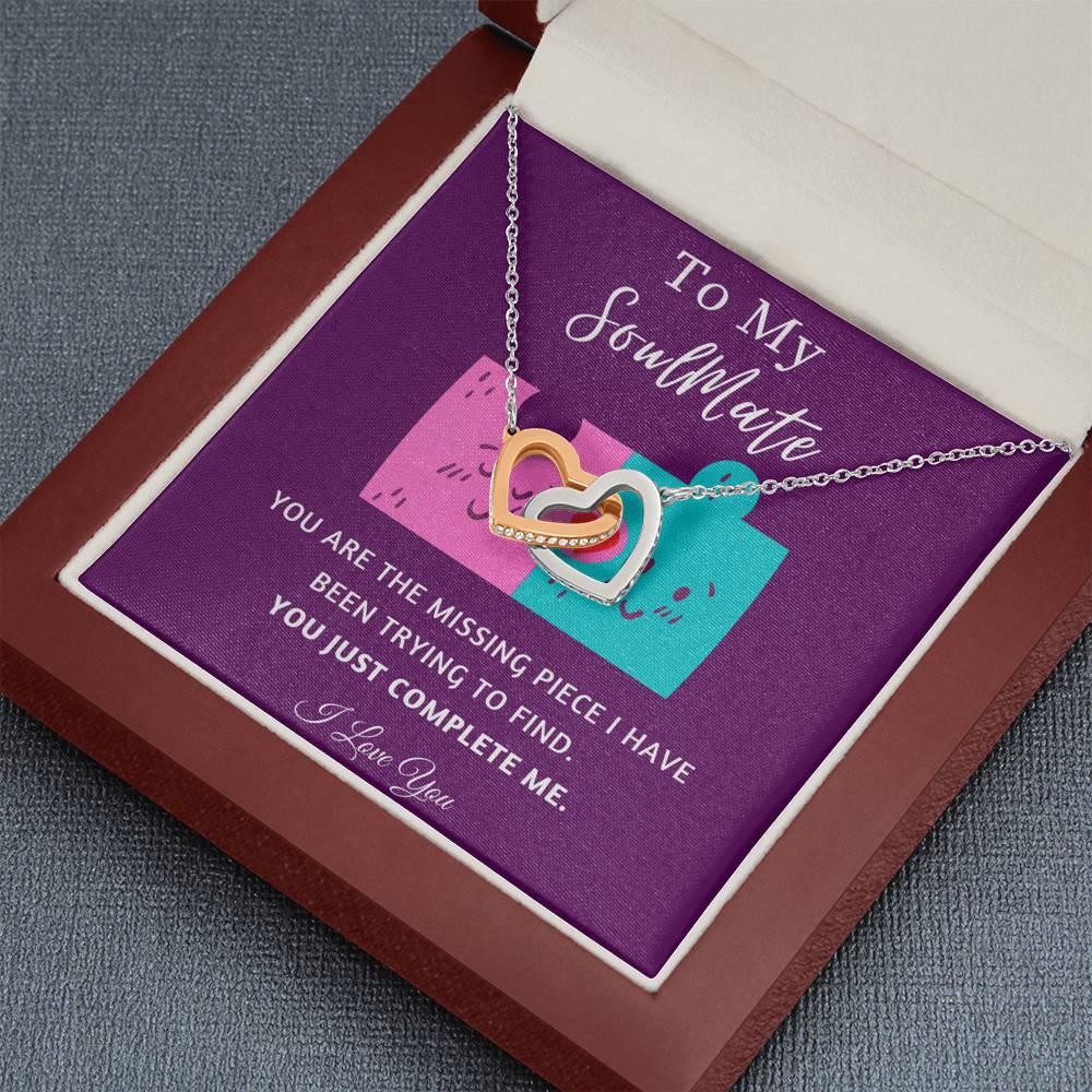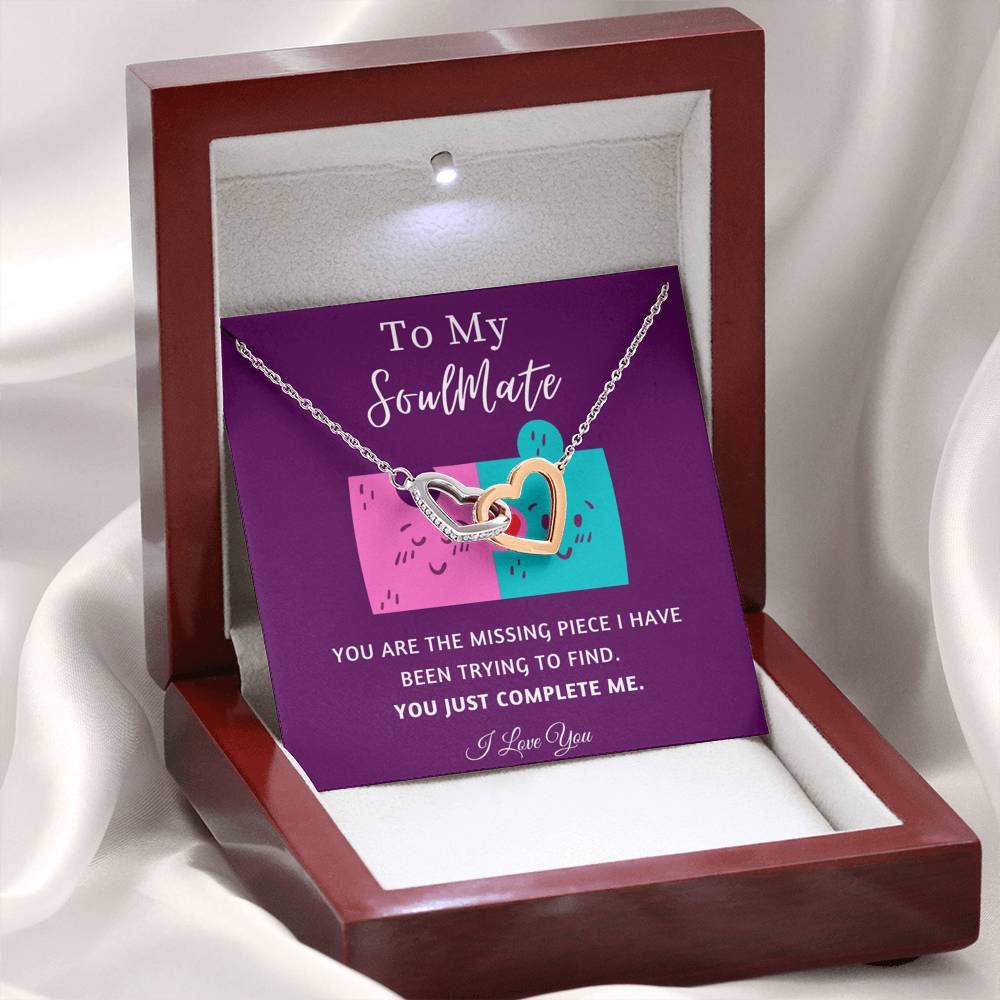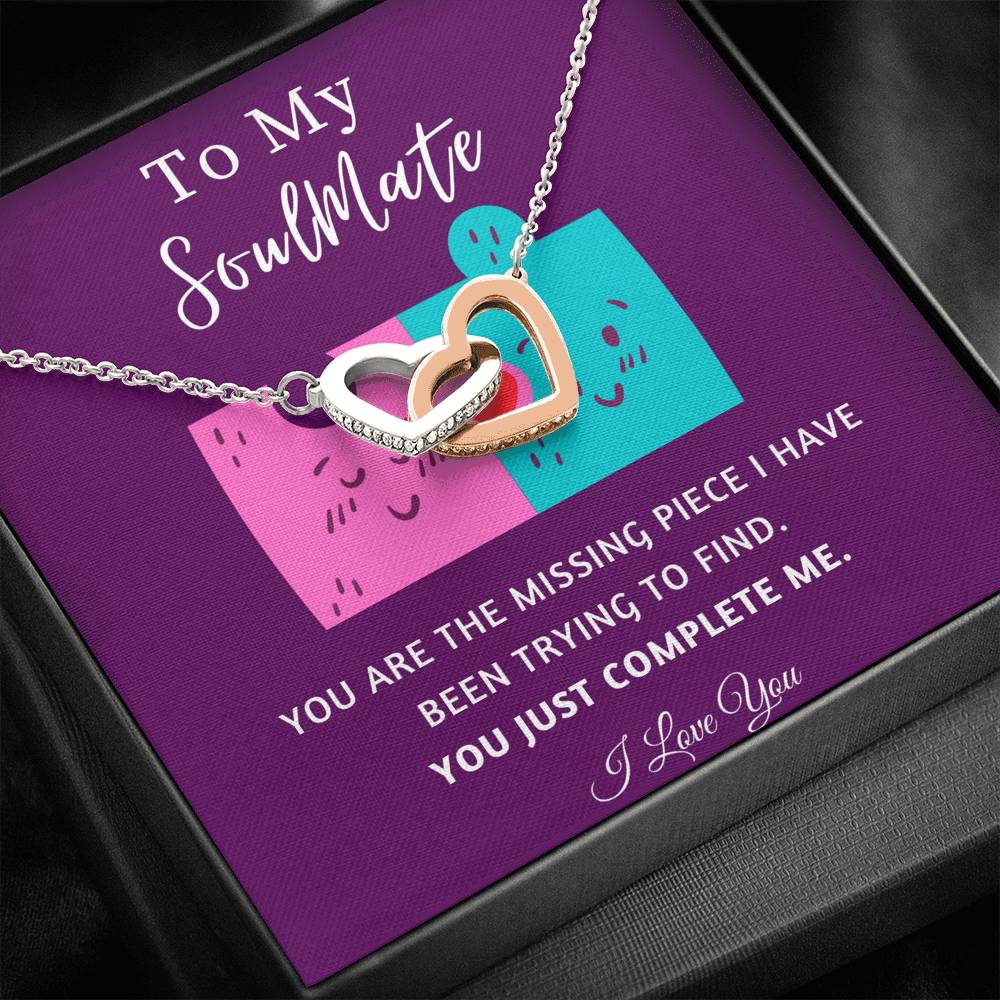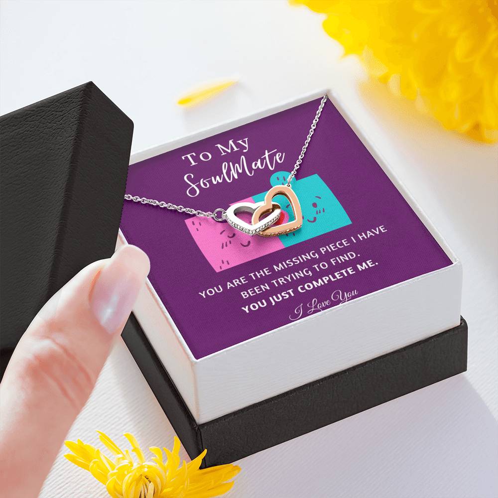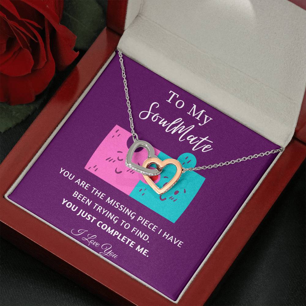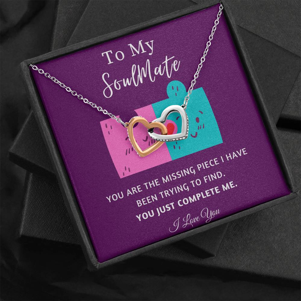 Two hearts embellished with Cubic Zirconia stones, interlocked together as a symbol of never-ending love. Made with high quality polished surgical steel. Cable chain measures 18 inches with a 4 inch extension, and fastens with a lobster clasp.